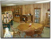 We buy our furniture in PA and it is made by the Amish and Mennonites. We carry dining room furniture: tables, chairs, hutches, china cabinets, accent tables and much more. All furniture is finished in a medium oak and will mix and match very well.